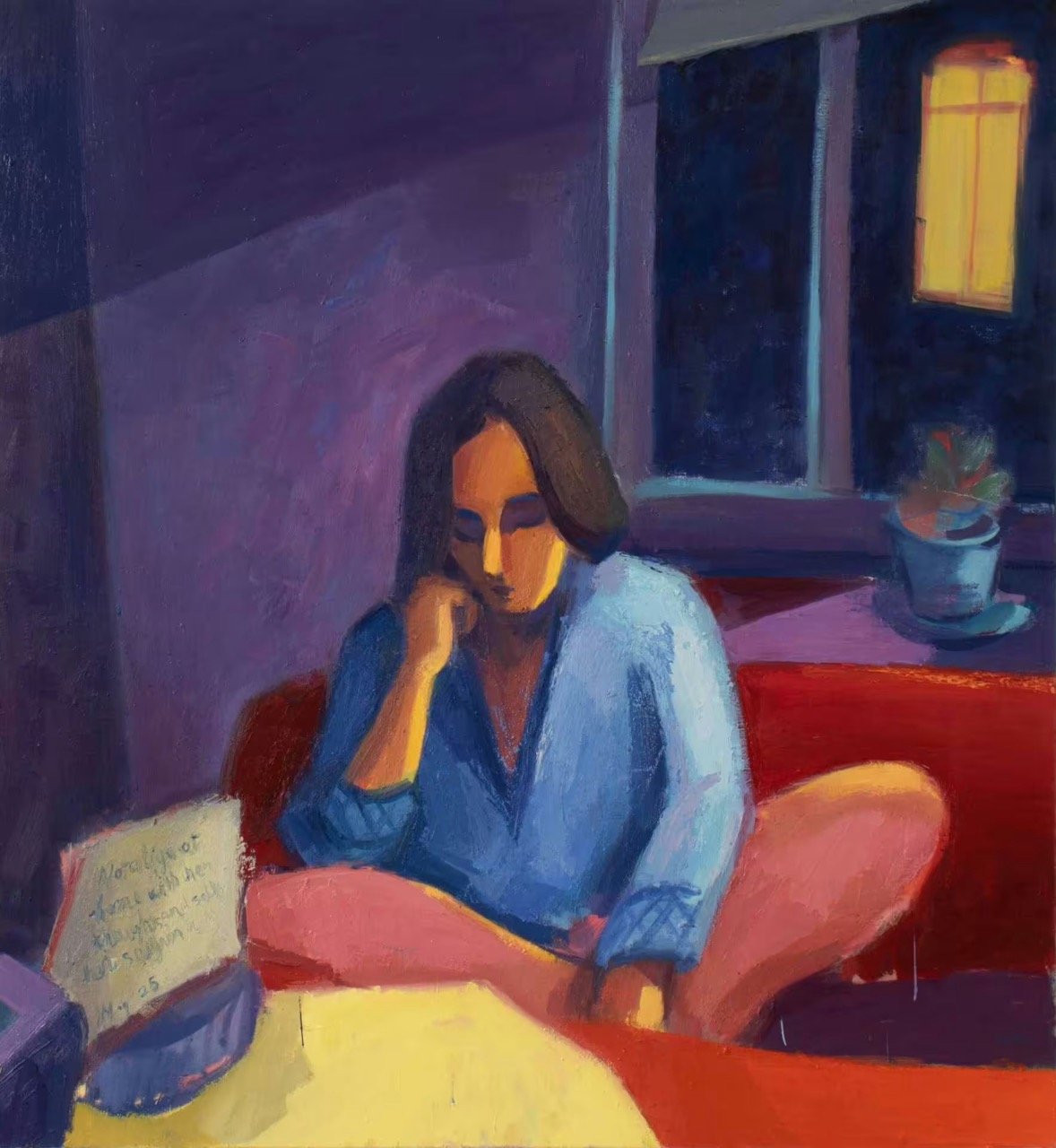 Anaïs Marie Perier, Absolventin der HAW Hamburg (Illustration), erforscht in ihrer Malerei die Essenz zwischenmenschlicher Erfahrungen durch ein Spiel von Figürlichem und Abstraktion, geprägt von vielfältigen kulturellen Einflüssen.
