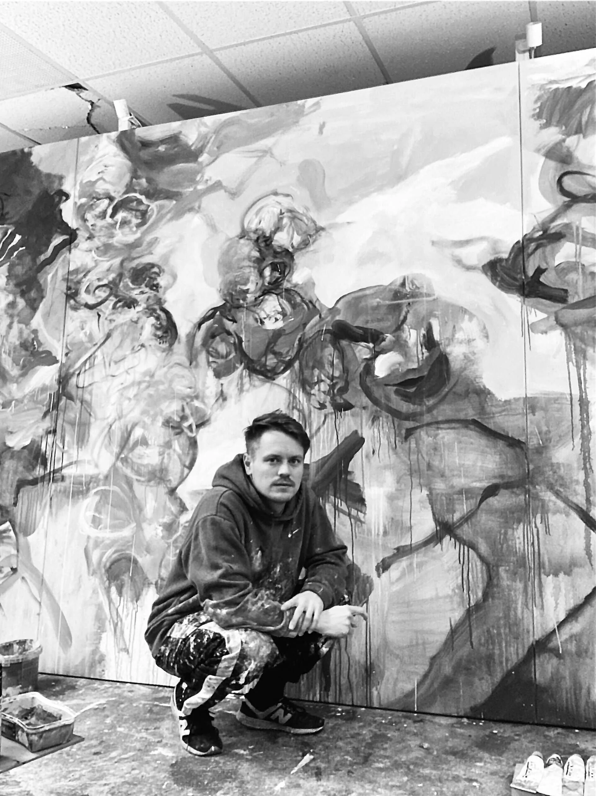 Jakob Schöning, vielfach nominierter Künstler (u.a. Kunstpreis Deutschland) mit Ateliers in Osnabrück und Leipzig, widmet sich in seinen Werken intensiven „Self-Assessments“ und Transformations-prozessen. Seine Arbeiten, die oft während internationaler Residenzen entstehen, sind Reaktionen auf wechselnde Umgebungen und hinterfragen den Platz des Individuums im stetigen Wandel.