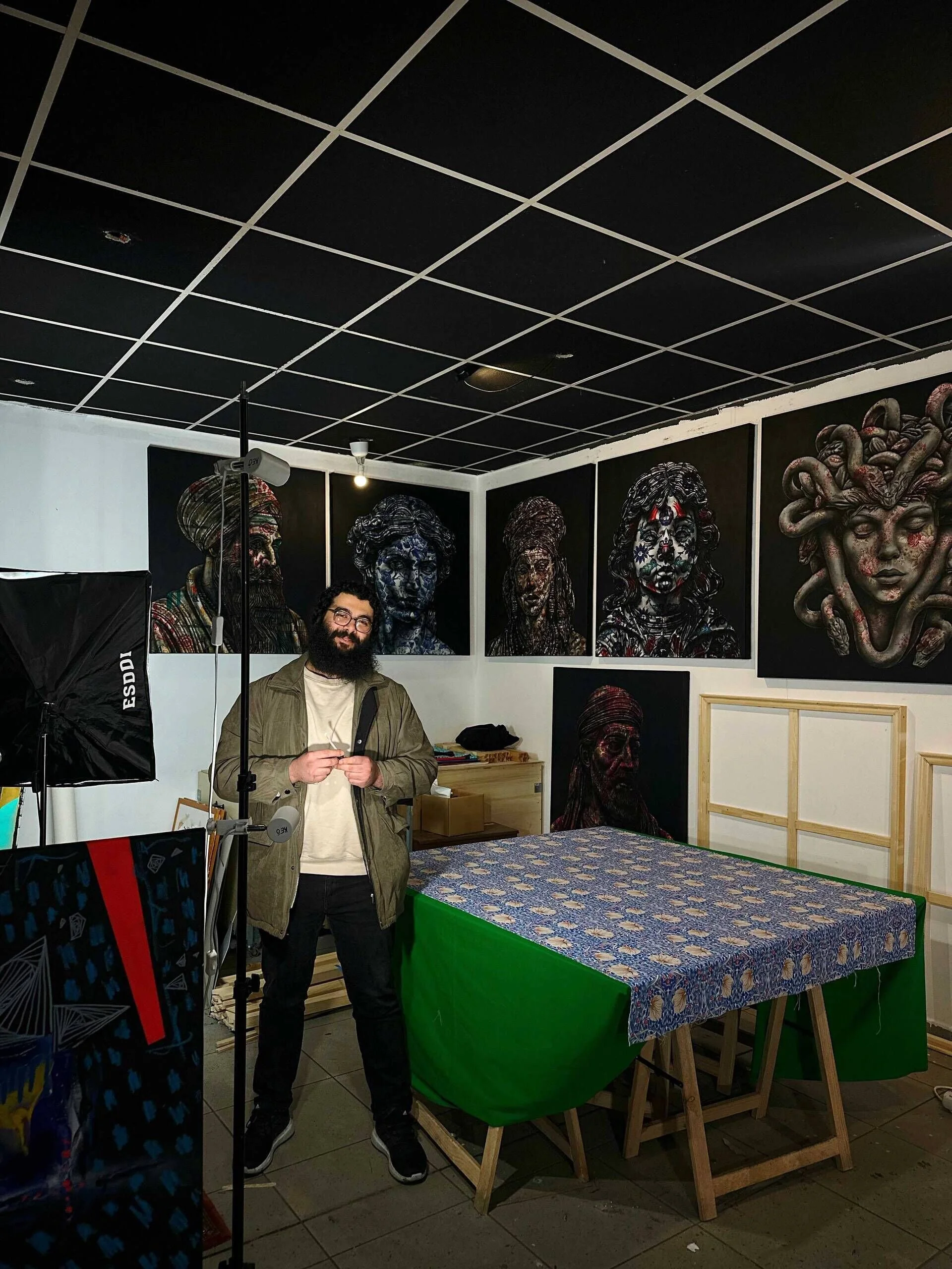 Kaan Ege Önal, Absolvent der Universität Osnabrück (Master of Arts) und der Universität Mersin (Bachelor Malerei), beschäftigt sich in seiner künstlerischen Arbeit mit der Beziehung zwischen Mensch und Kultur. Im Zentrum steht die Frage, wie wir geprägt werden — durch Herkunft, Geschichte, Tradition und Menschen. Aufgewachsen im Keramikatelier seines Vaters in Kütahya, verbindet er figürliche Darstellung mit traditionellen Textilien und Motiven aus unterschiedlichen Kulturen. Seine Arbeiten wurden unter anderem in der Pinakothek der Moderne München, der Kunsthalle Bremen und im Deutschen Bundestag in Berlin gezeigt.